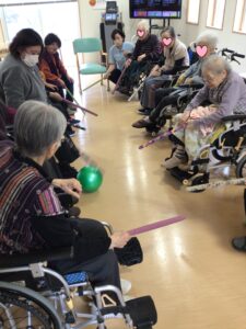 本日は、午後のティータイムのあと、数名のご利用者様とボールを使ったレクリエーションをしました🎵